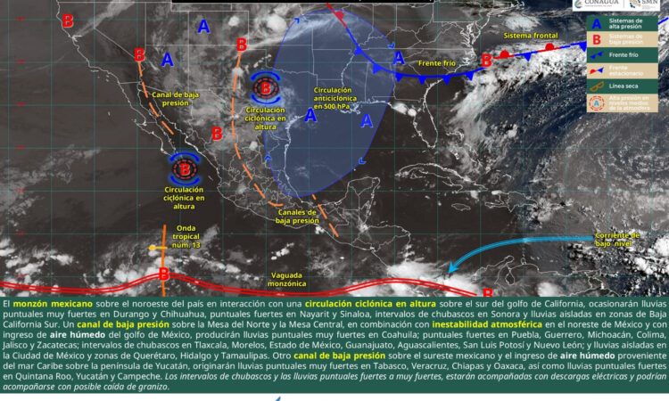 Lo anterior debido a un canal de baja presión, circulación ciclónica en niveles altos de la atmósfera y el arrastre de humedad del Océano Pacífico.