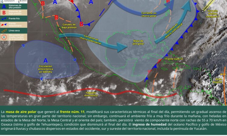 De acuerdo con el pronóstico del tiempo emitido por la Comisión Nacional del Agua (Conagua), en estas elevaciones, no se descartan heladas por radiación al amanecer. Los fenómenos son provocados por la masa de aire frío que relacionada al frente frío número 11 que comenzará a modificar sus características térmicas.